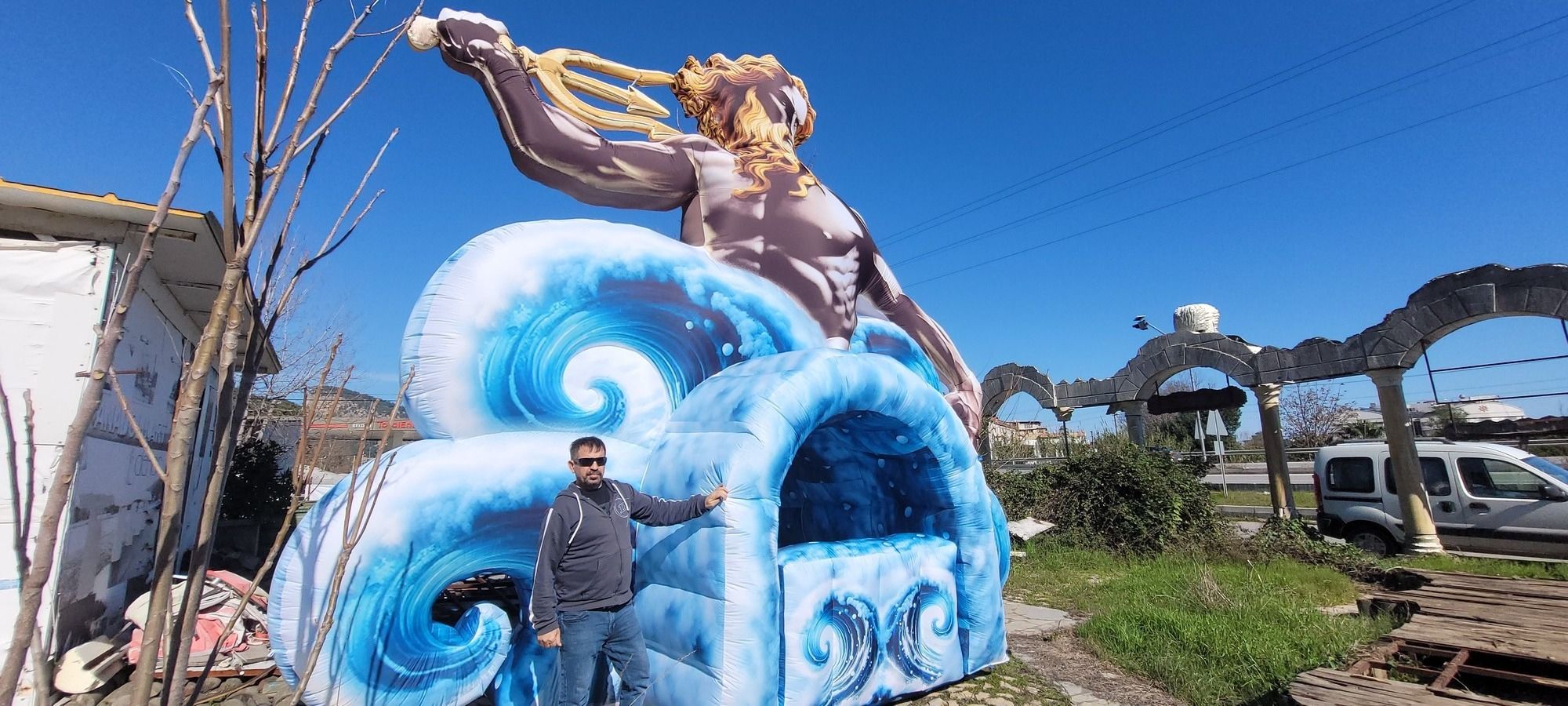 Mitolojik deniz altı dünyasından ilham alan şişme heykeller, deniz atları, tapınak sütunları ve zeus gibi figürleriyle büyülü bir atmosfer sunar.