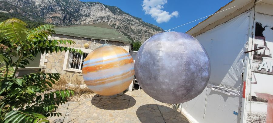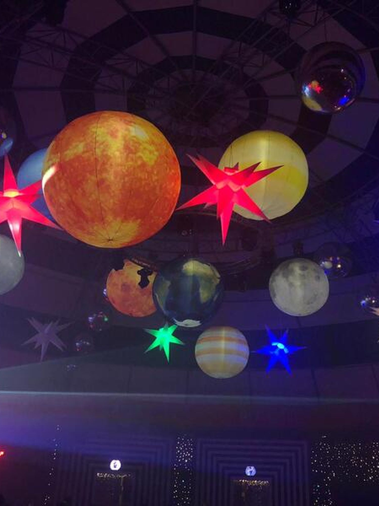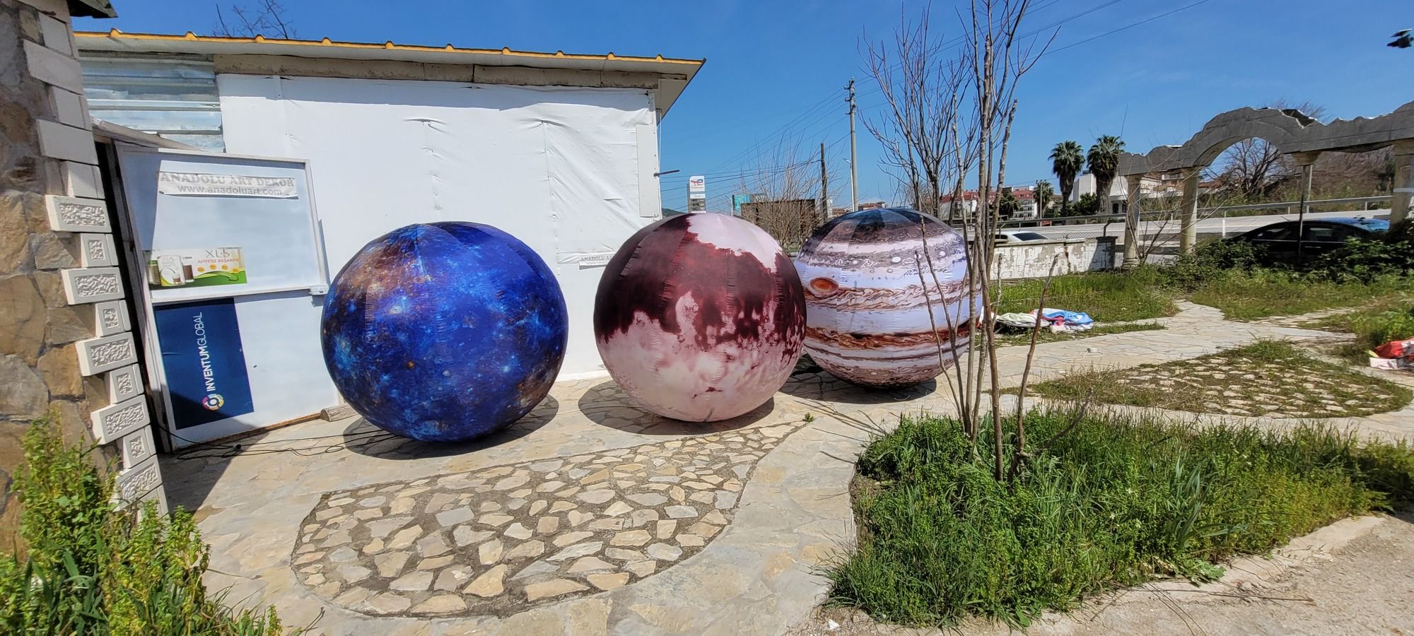 Dev şişme gezegen figürleri, yıldızlar ve uzay temalı dekorlarla etkinliklere büyüleyici, eğitici ve dikkat çekici bir uzay atmosferi katın.
