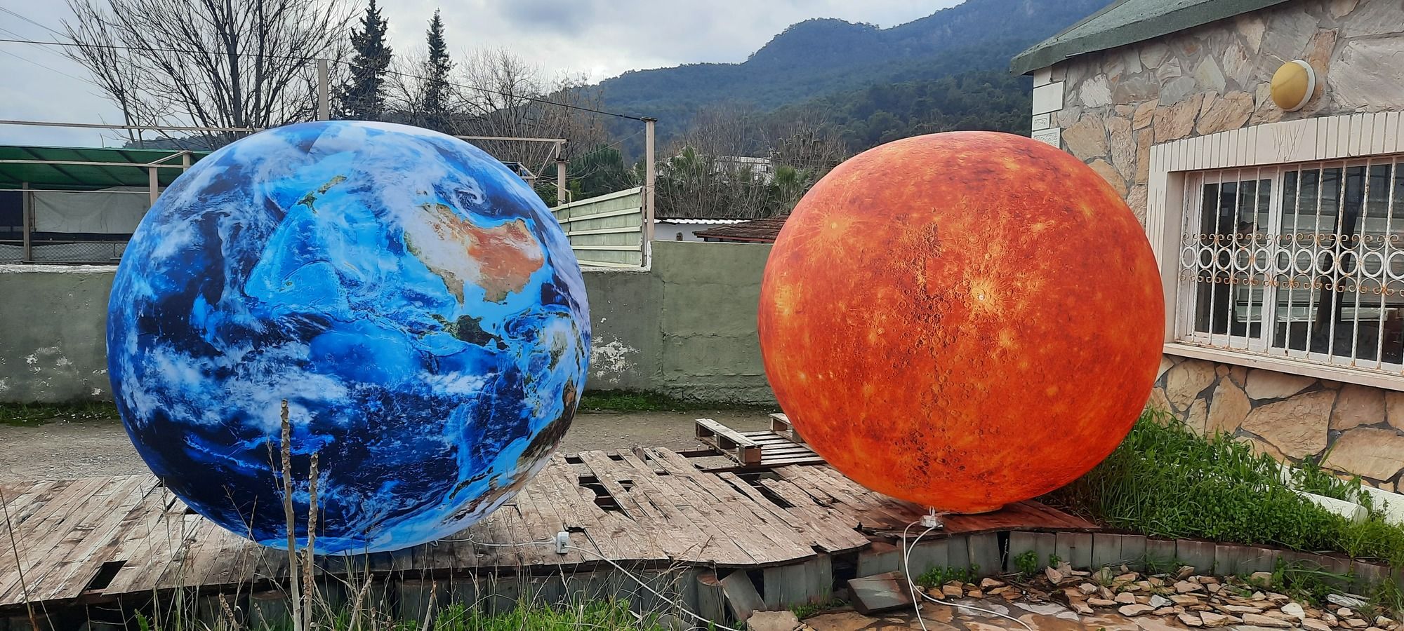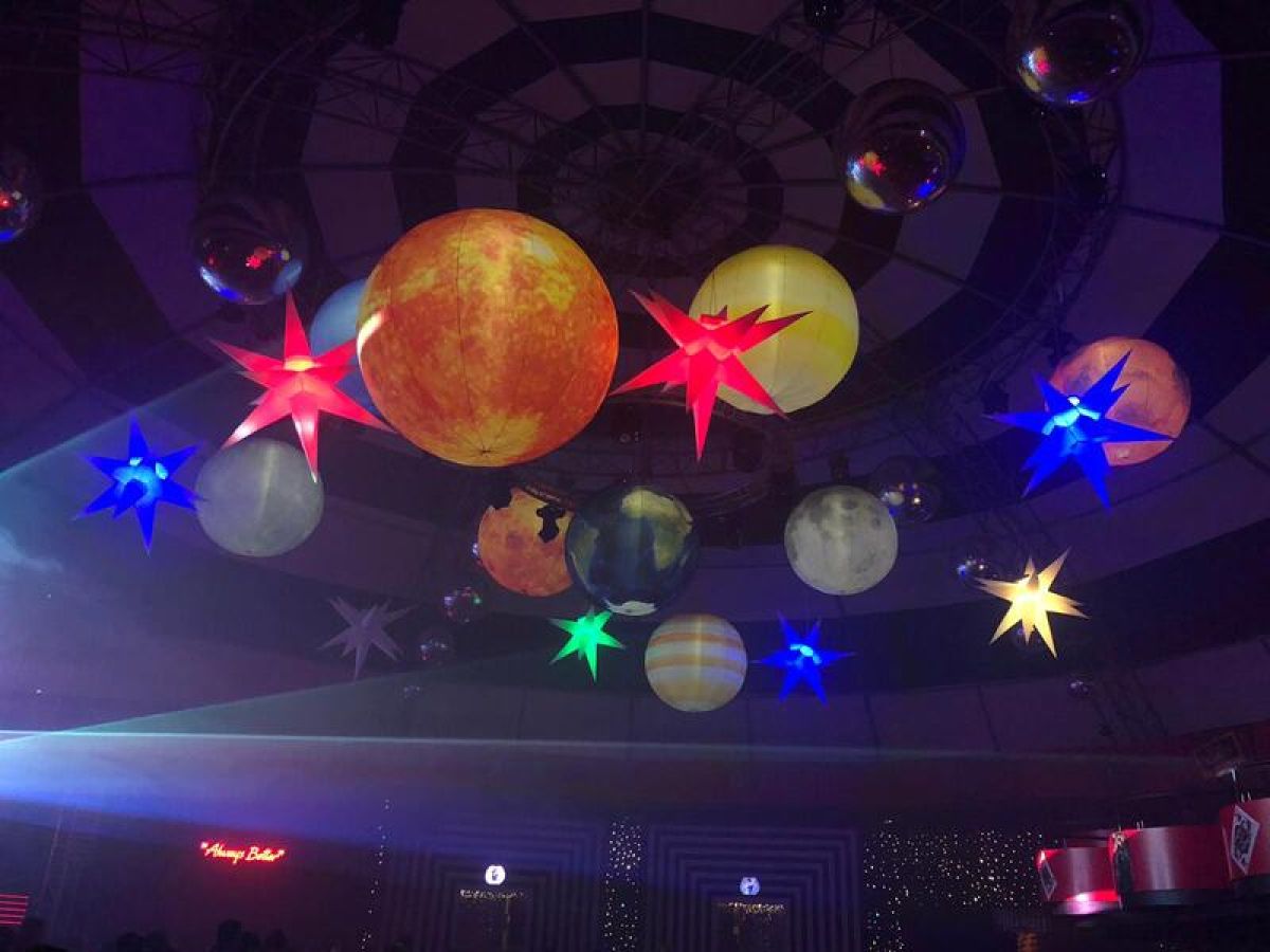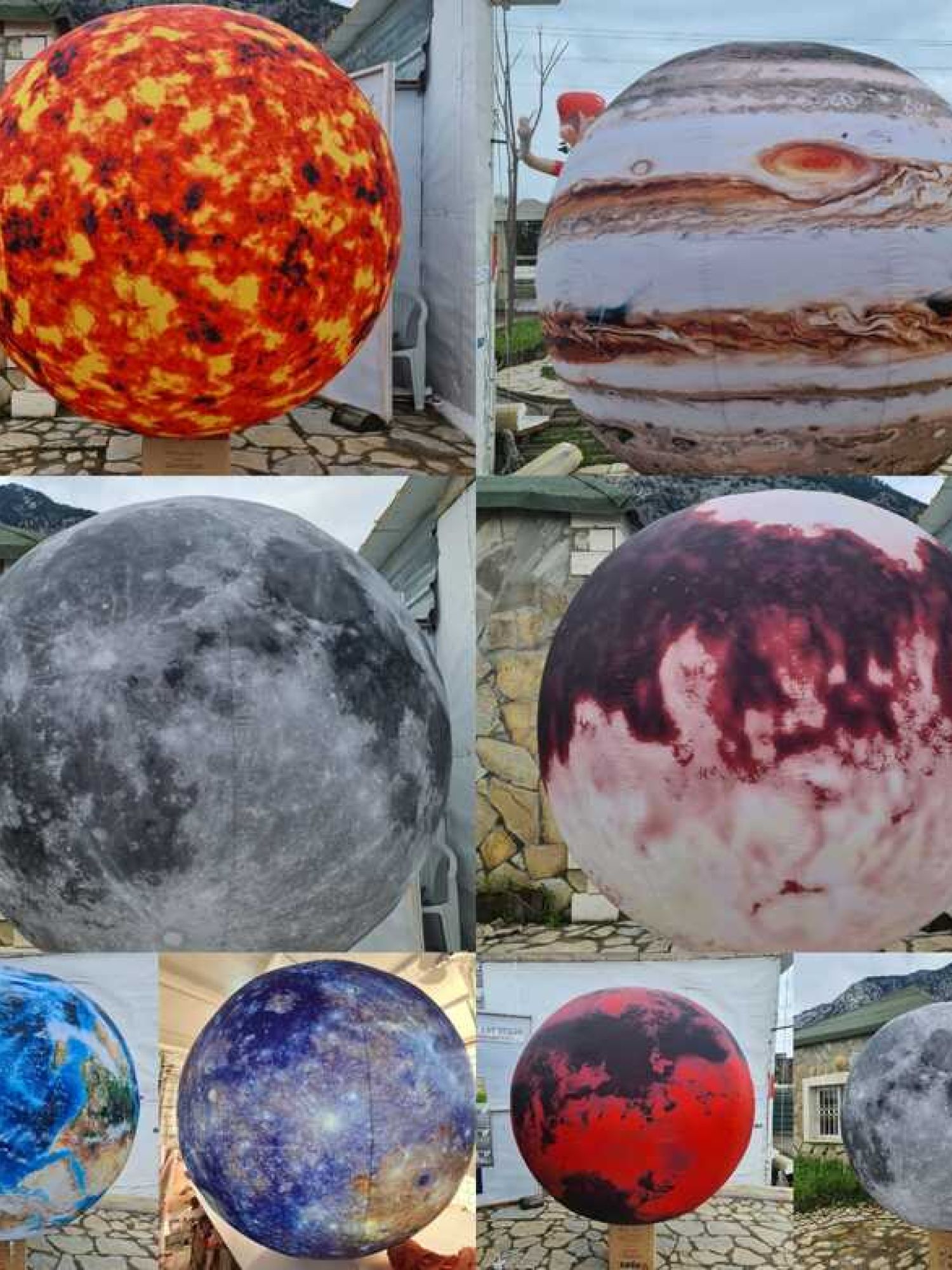 Dev şişme gezegen figürleri, yıldızlar ve uzay temalı dekorlarla etkinliklere büyüleyici, eğitici ve dikkat çekici bir uzay atmosferi katın.