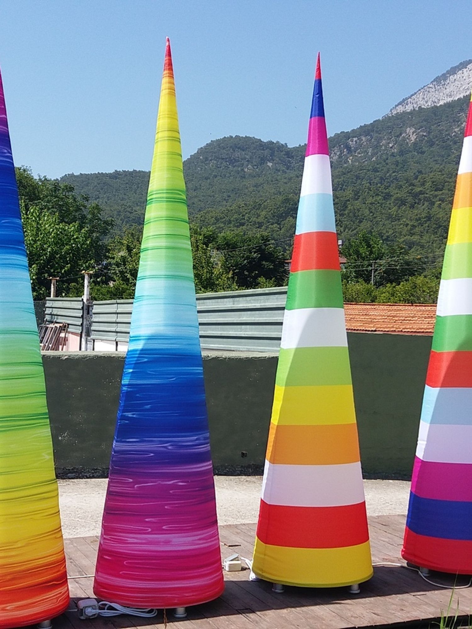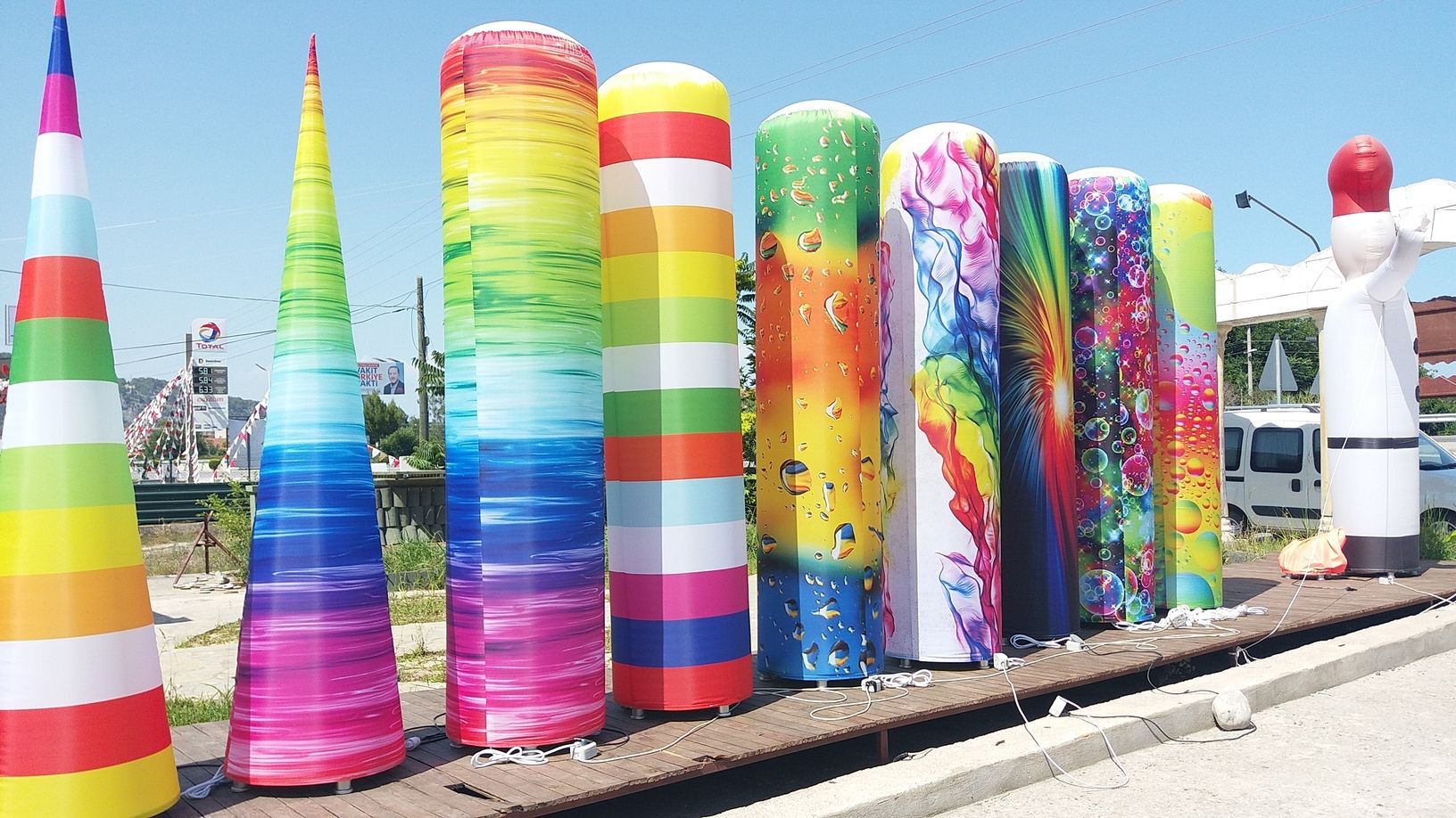 Rengârenk silindir ve konik şişme balonlarla etkinlik alanlarını enerjik, neşeli ve dikkat çekici bir atmosfere dönüştürün.