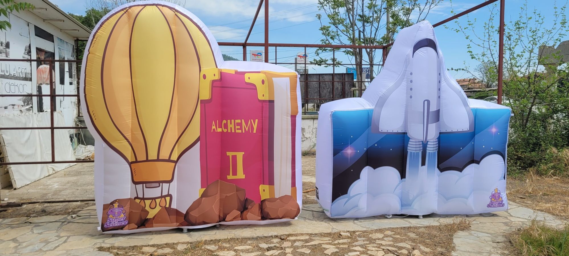 DNA sarmalları, deney tüpleri ve atom figürleri gibi şişme dekorlarla etkinlik alanlarını eğitici, ilgi çekici ve tematik bir yapıya kavuşturun.
